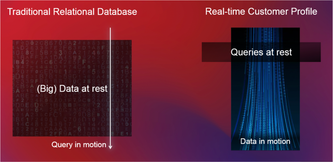 在传统数据库、数据处理上,还主要是『数据被动,查询主动』。数据在数据库中处于静止状态,直到用户发出查询请求。即使数据发生变化,也必须用户主动重新发出相同的查询以获得更新的结果。但现在数据量越来越大、数据变化及时感知要求越来越高,这种方法已无法满足我们与数据交互的整个范式。