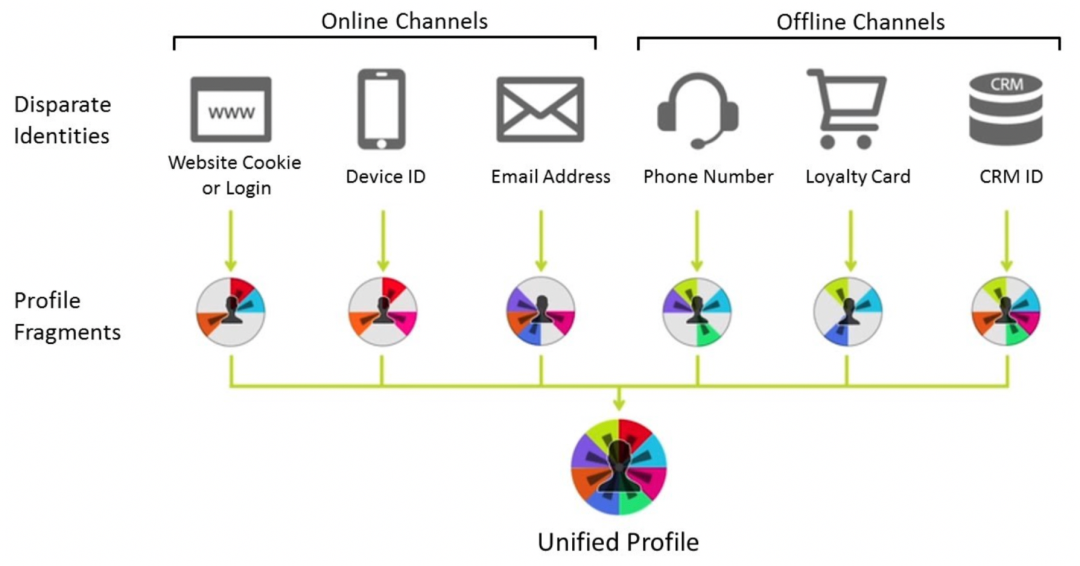 - 实时的全渠道身份识别、管理:为了打破数据孤岛,打通多渠道身份,是提供统一用户的关键,也是为了进行跨渠道用户营销的前提。