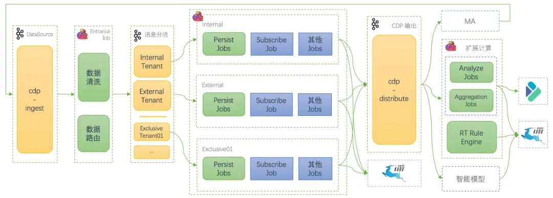 - 实时计算做到了数十万 TPS 的实时处理、实时持久化,做到毫秒级延迟。
