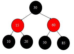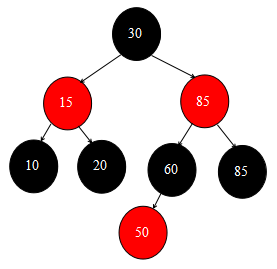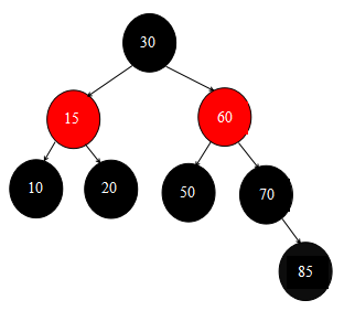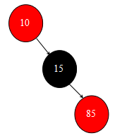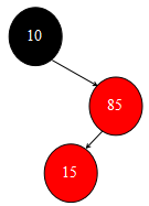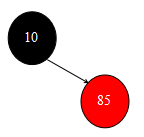 回到实际的例子,对85这个节点进行右旋之后还有一次着色操作(2),分别是将x的父节点着色为黑色,将x的祖父节点着色为红色,那么此时的树形结构应当为: