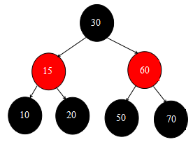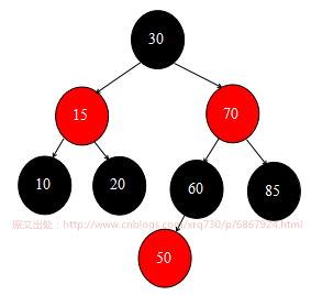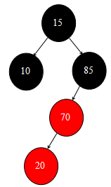 put(20, "20"),插入的位置应当是70的左子节点,默认插入红色,插入之后的结构图为:
