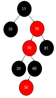 最后一步,对节点70的父节点节点15进行一次左旋,左旋之后的结构为: