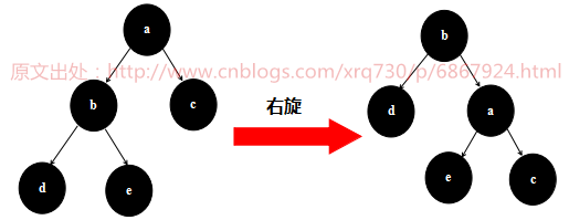 这里可能会有的一个问题是:b有左右两个子节点分别为d和e,为什么右旋的时候要将右子节点e拿到a的左子节点而不是b的左子节点d?