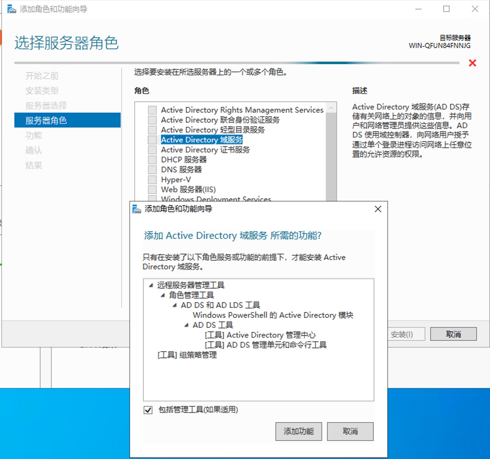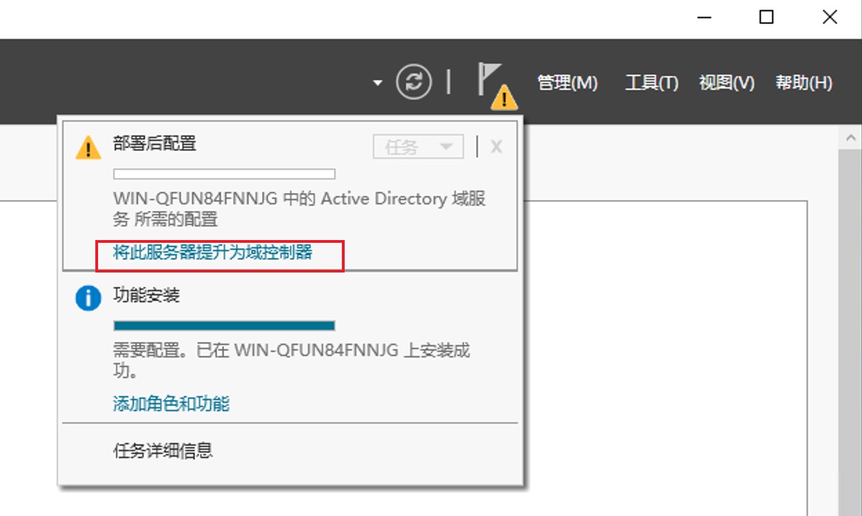 - 将服务器提升为域控制器