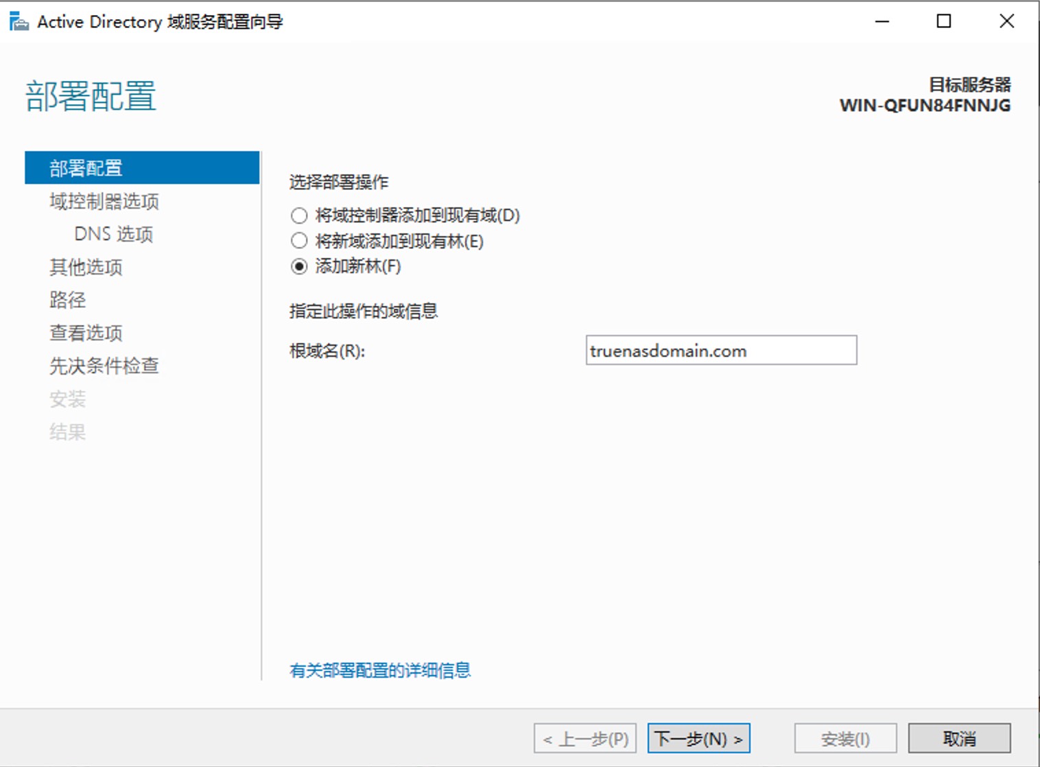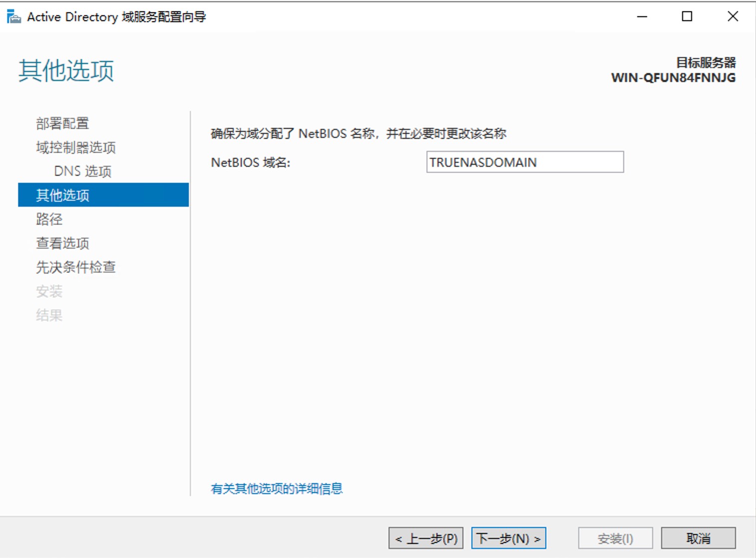 - 设置NetBIOS名字,会自动带过来。然后一路下一步安装